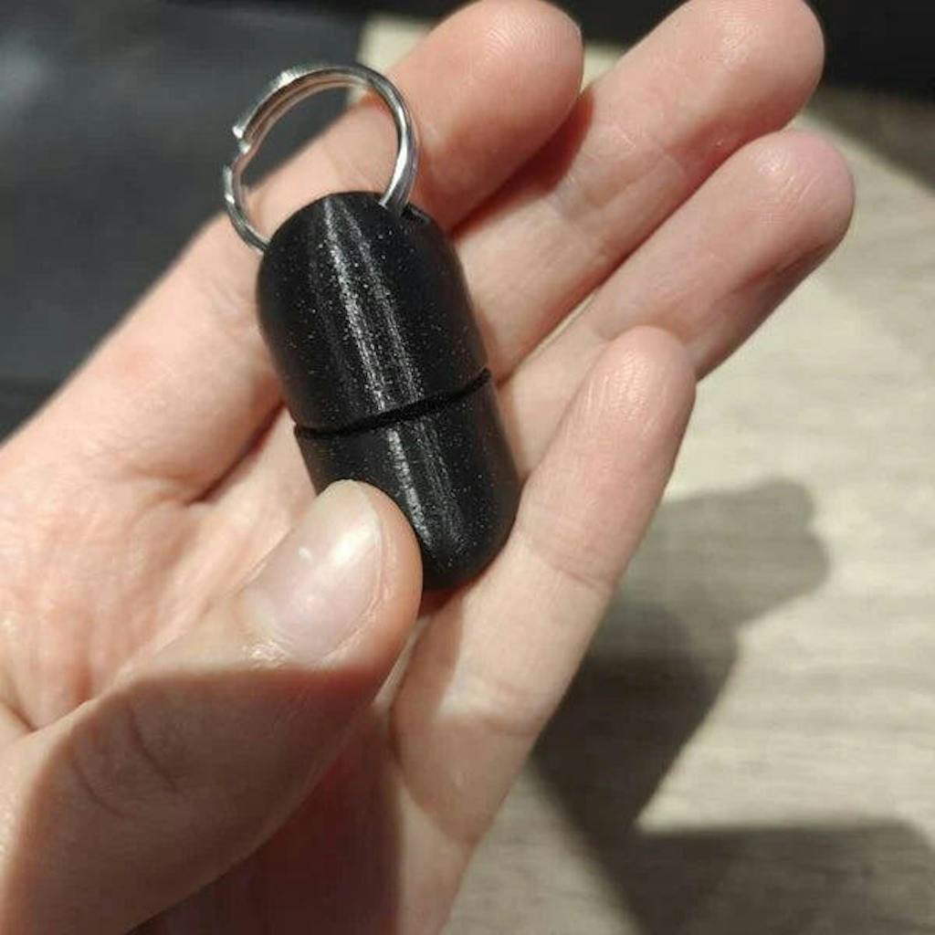 This compact keyring pillbox and travel pill case keeps your daily meds, vitamins, or supplements close — wherever life takes you. Swiss-made, ultra-portable, and fully customizable.
